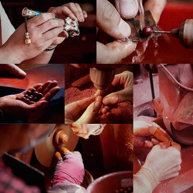 Diese Halskette ist handgefertigt aus 96 % natürlichem Zinnober , der für seine beruhigenden und schützenden Eigenschaften bekannt ist. Der Anhänger und die Perlen werden sorgfältig hergestellt, um ihre spirituelle Energie zu bewahren.