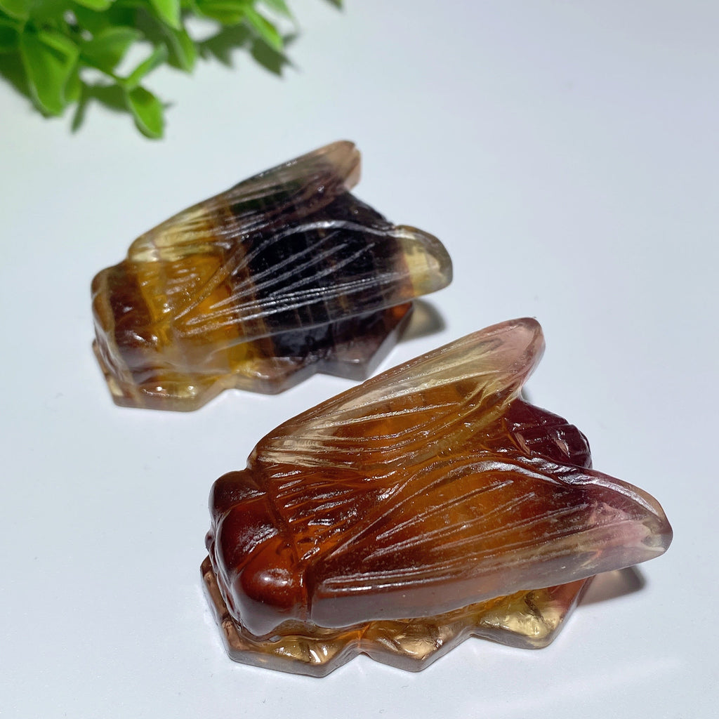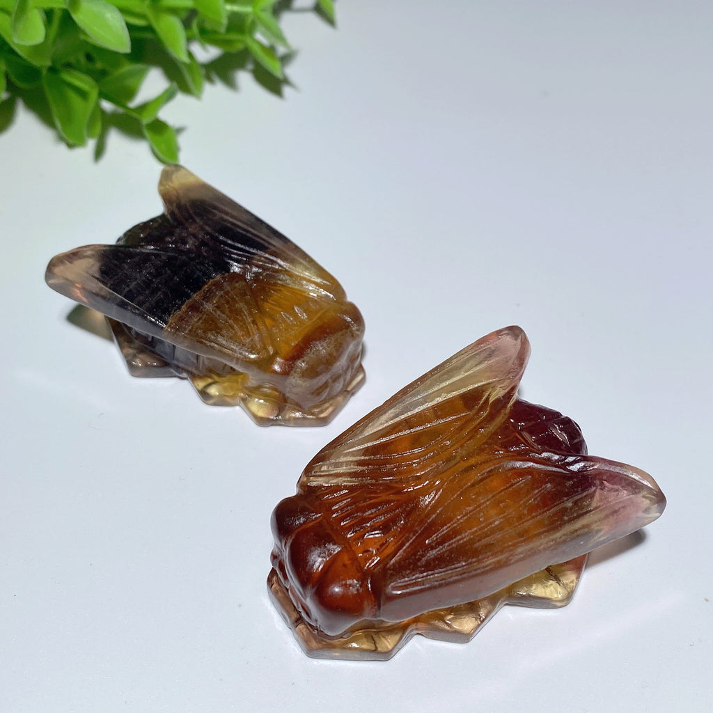 Diese von erfahrenen Kunsthandwerkern sorgfältig gefertigte Schnitzerei offenbart die natürliche Schönheit des Fluorits und verkörpert gleichzeitig die symbolische Kraft des Geistertiers Zikade. Die glatte, polierte Oberfläche verstärkt die natürliche Lichtdurchlässigkeit des Steins und lässt das Licht durch seinen goldgelben Körper tanzen.
