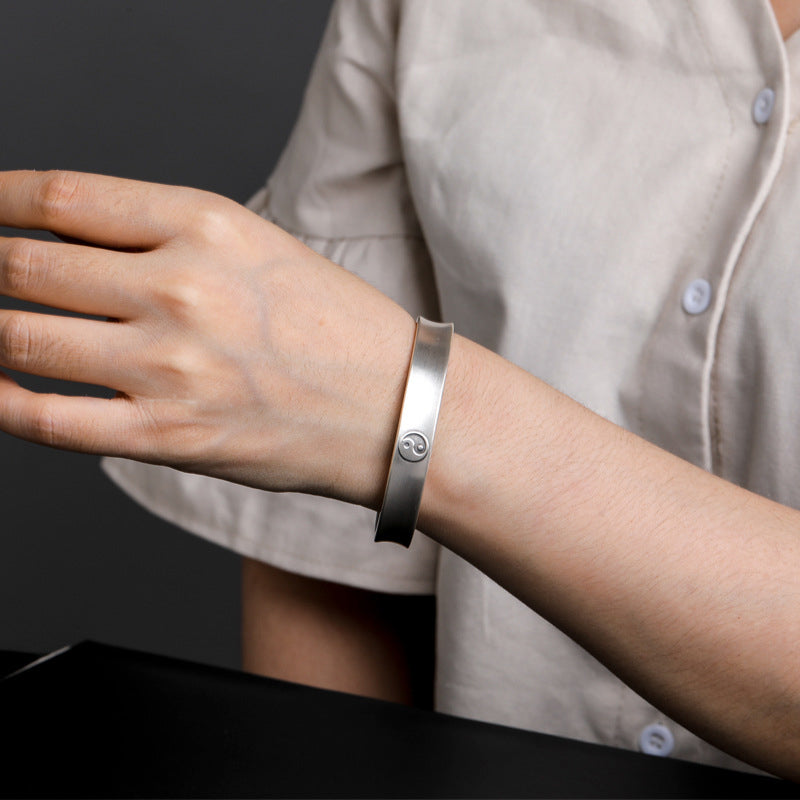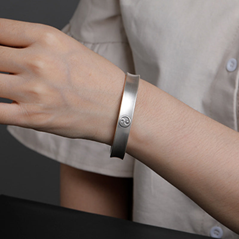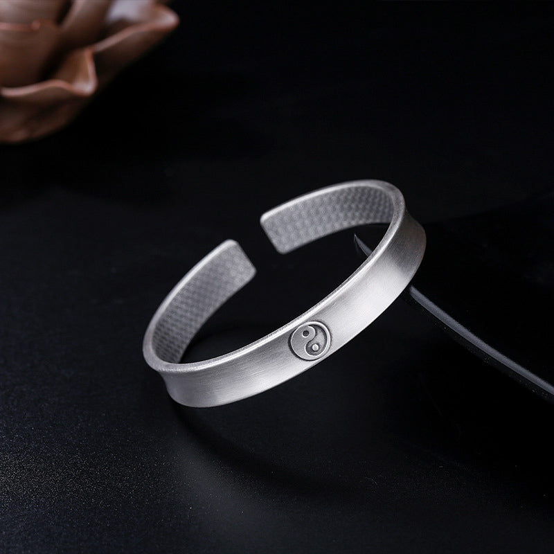 The elegant design features the classic yin and yang symbol alongside traditional auspicious clouds, creating a piece that connects contemporary style with timeless Eastern wisdom. Each element has been carefully detailed by skilled artisans to create a bracelet that resonates with spiritual significance.
