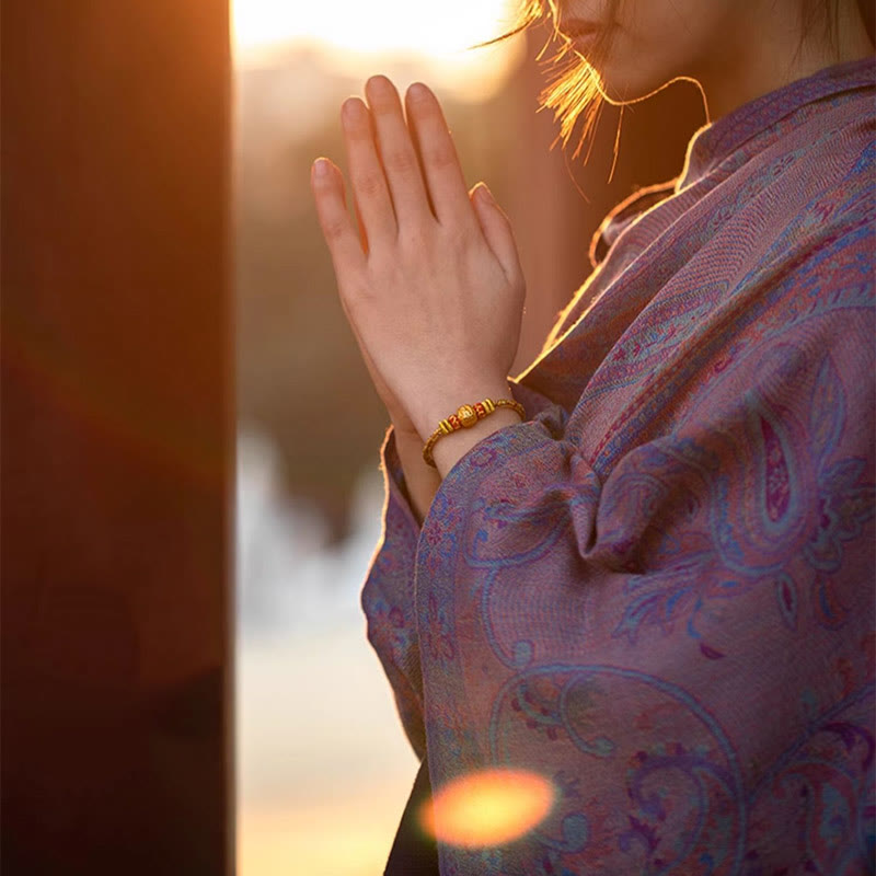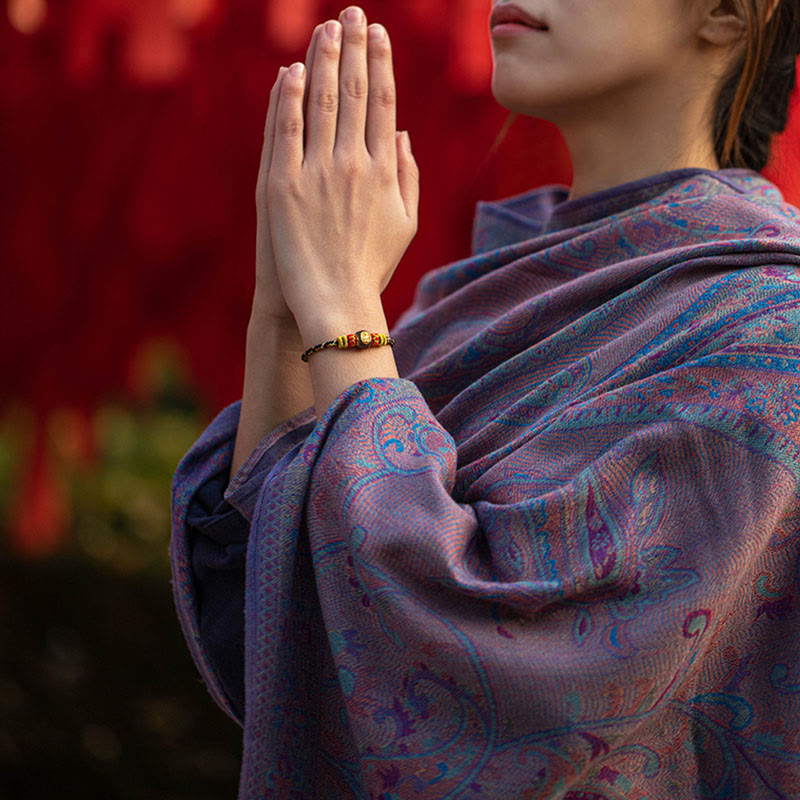 The bracelet is handcrafted with premium string and features a 999 gold charm. The gold weight is approximately 0.02 - 0.022 oz (approx. 0.57-0.61g).